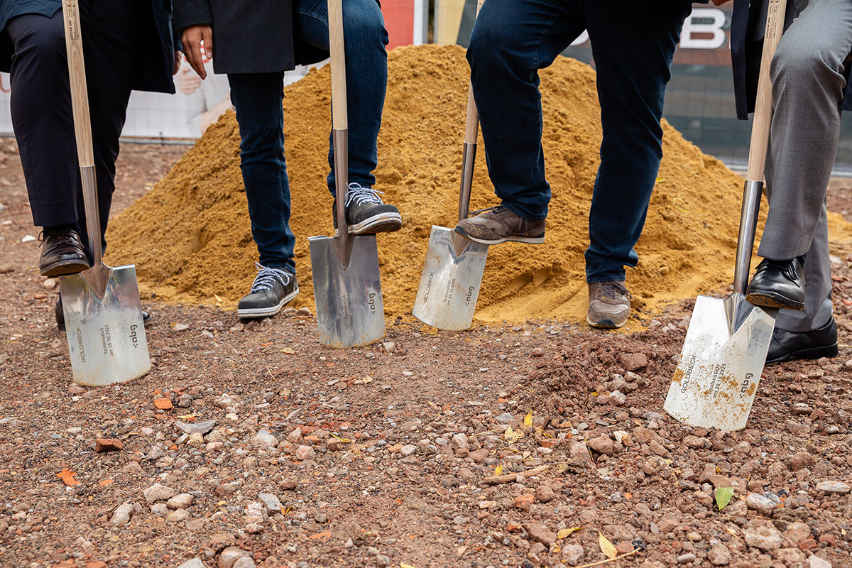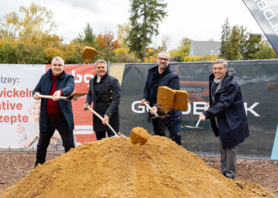 Bild: ABG-Geschäftsführer Volker Riedel, Bürgermeister Steffen Jung, Architekt Jörg Deibert und Niederlassungsleiter Mario Bernd Liebchen von Goldbeck (von links), © Carsten Selak FOTOGRAFIE