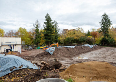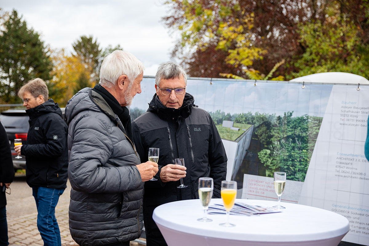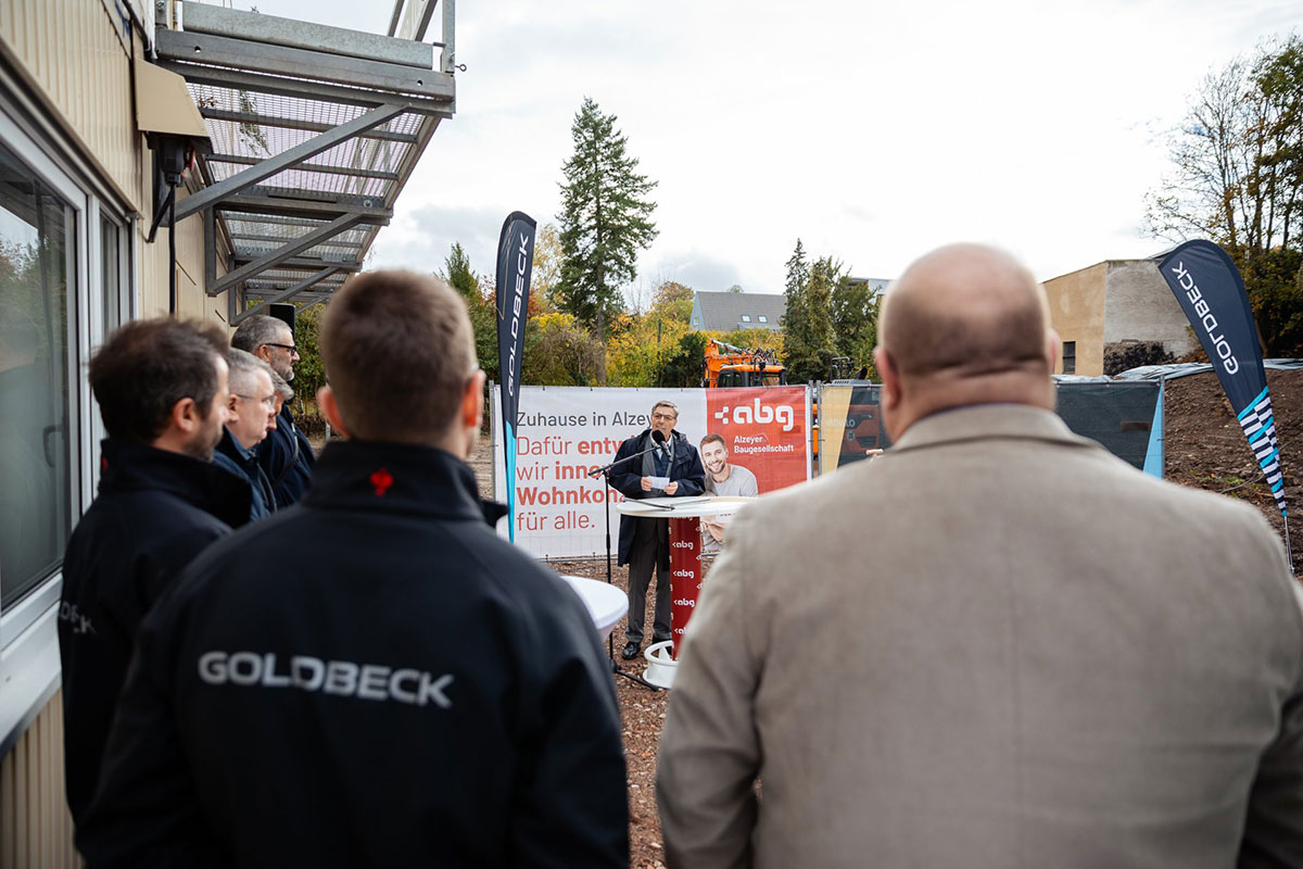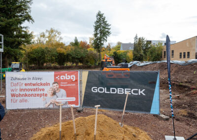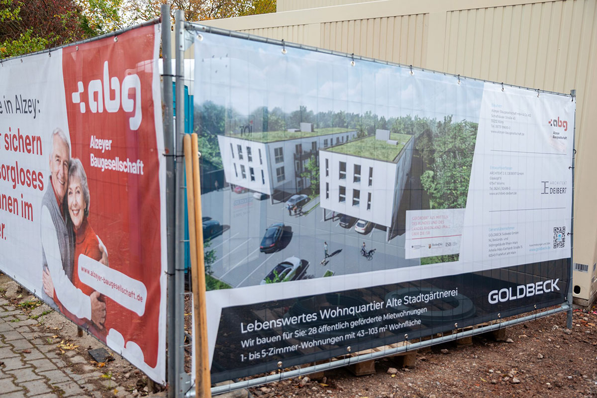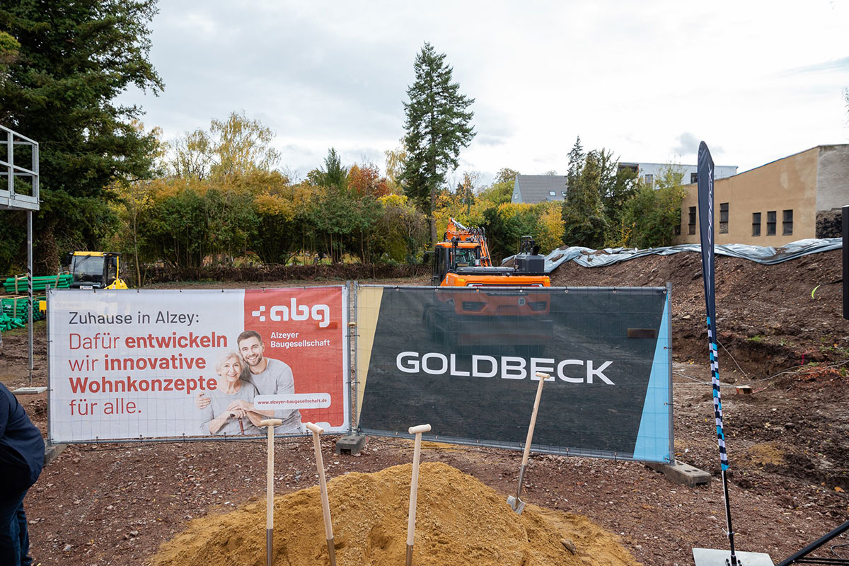 Das Bauprojekt wurde in enger Zusammenarbeit mit Architekt Jörg Deibert und der Goldbeck Südwest GmbH entwickelt. Goldbeck baut die beiden Wohngebäude mit industriell vorgefertigten Systemelementen, die in eigenen Werken gefertigt und auf der Baustelle nur noch montiert werden. So können qualitativ hochwertige Gebäude termin- und kostensicher realisiert werden. Die Bäder werden sogar komplett fertiggestellt und als fertiges System eingesetzt – das spart zusätzlich Ressourcen und Zeit. Die Fertigstellung der Wohngebäude ist für November 2026 vorgesehen. „Mit Goldbeck haben wir einen verlässlichen Partner an unserer Seite, der uns als Totalunternehmer durch die systematisierte Bauweise Qualität, Effizienz und Terminsicherheit gewährleistet“, sagt Volker Riedel. „Während anderswo noch über die Beschleunigung von Bauprojekten diskutiert wird, packen wir in Alzey längst an“, ergänzt Bürgermeister Steffen Jung. „Wir zeigen, dass bezahlbarer Wohnraum, modernes Bauen und Nachhaltigkeit kein Widerspruch sind.“