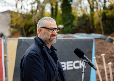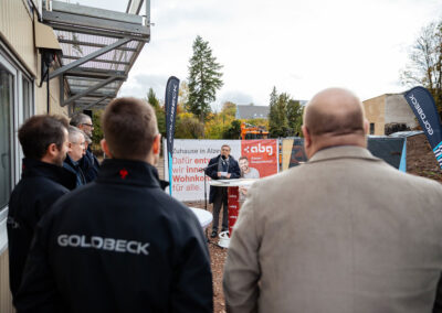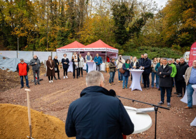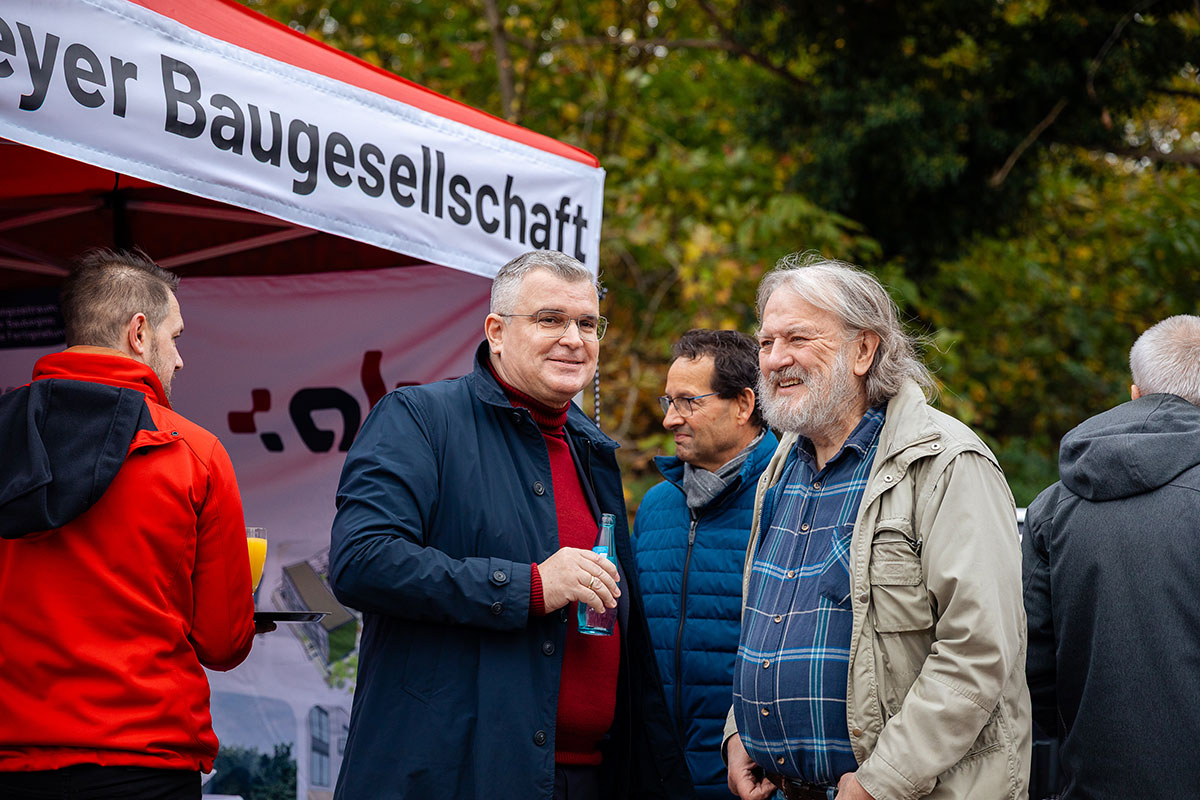 Mit großer Freude durften wir zahlreiche Gäste begrüßen – darunter unseren Aufsichtsratsvorsitzenden, Herrn Bürgermeister Steffen Jung, viele weitere Mitglieder unseres Aufsichtsrats, unseren Architekten Jörg Deibert und Herrn Mario Liebchen, Niederlassungsleiter der Goldbeck Südwest GmbH, sowie weitere Mitwirkende und am Projekt Beteiligte.